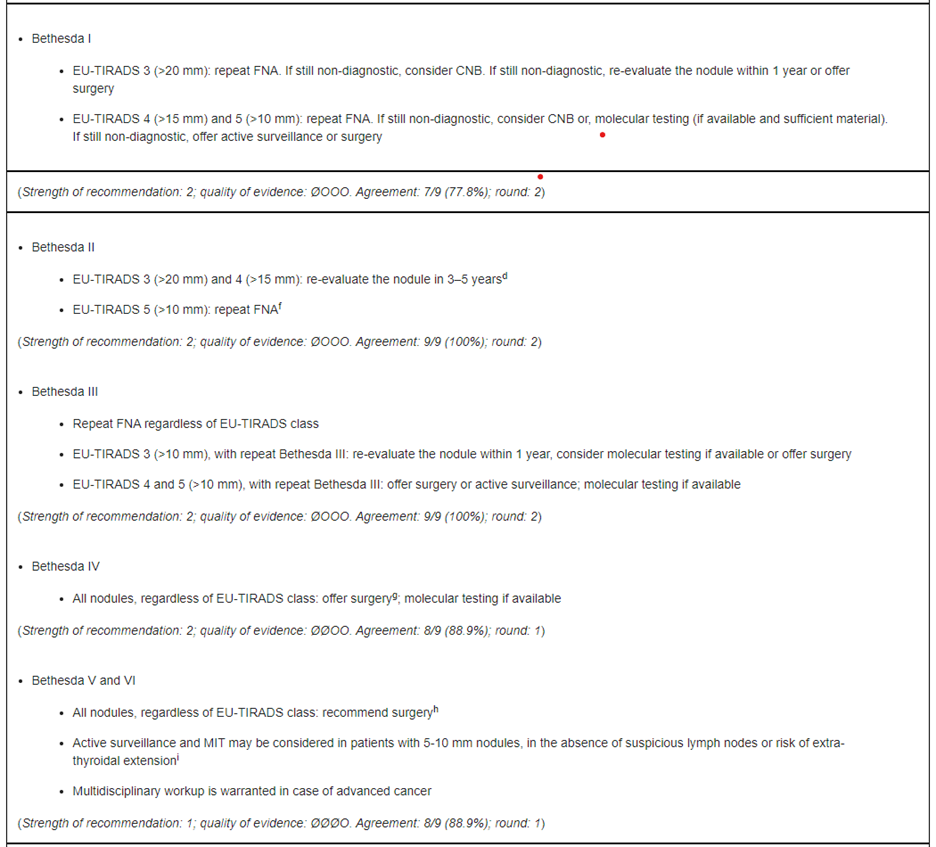 - Durante, C., Hegedüs, L., Czarniecka, A., Paschke, R., Russ, G., Schmitt, F., Soares, P., Solymosi, T., & Papini, E. (2023). 2023 European Thyroid Association Clinical Practice Guidelines for thyroid nodule management. Eur Thyroid J, 12(5). https://doi.org/10.1530/etj-23-0067