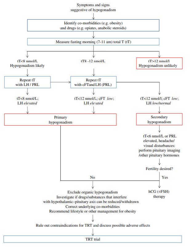 - Mulhall, J. P., Trost, L. W., Brannigan, R. E., Kurtz, E. G., Redmon, J. B., Chiles, K. A., Lightner, D. J., Miner, M. M., Murad, M. H., Nelson, C. J., Platz, E. A., Ramanathan, L. V., & Lewis, R. W. (2018, 2018). Evaluation and Management of Testosterone Deficiency. American Urological Association. Retrieved 10/22/2018 from https://www.auanet.org/guidelines-and-quality/guidelines/testosterone-deficiency-guideline