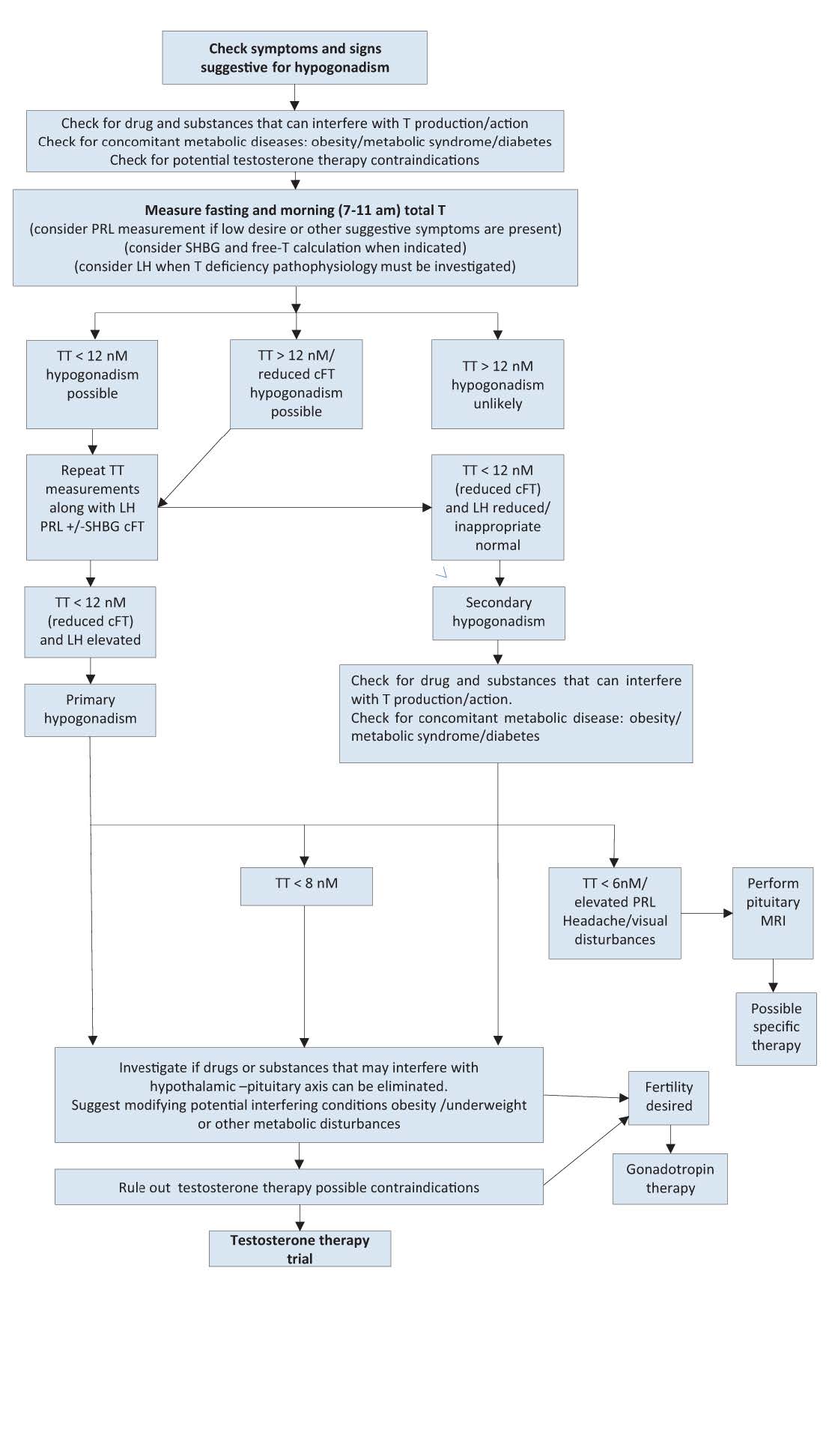 - Measurement of serum total testosterone (see Note 1) is considered MEDICALLY NECESSARY in any of the following situations: