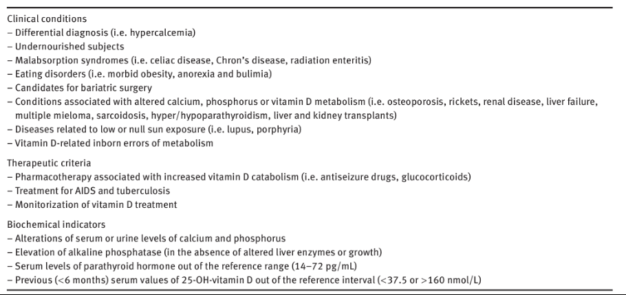 A retrospective study of 32,363 tests of serum 25OHD found that a significant proportion of the lab requests were unjustified by medical criteria, and “that clinical and biochemical criteria may be necessary to justify vitamin D testing but not sufficient to indicate the presence of vitamin D deficiency” (Granado-Lorencio et al., 2016).